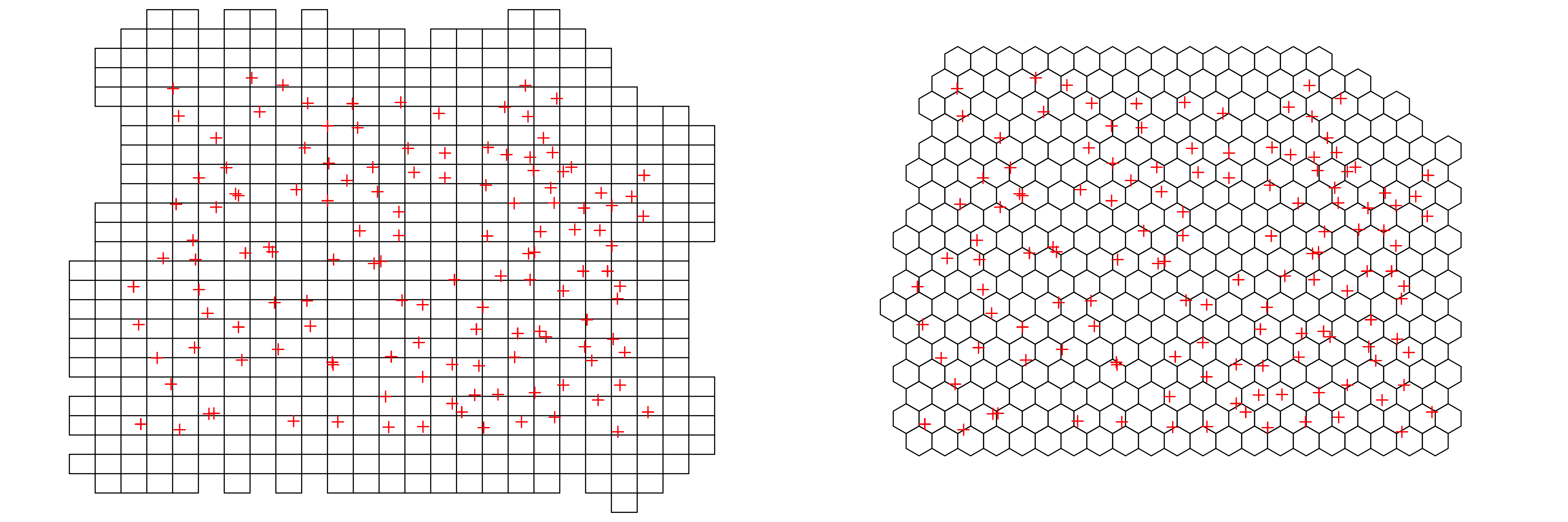 length.out = 80))The function inla.mesh.projector provides all the information required, based on the created spatial grid, to carry out the mapping.