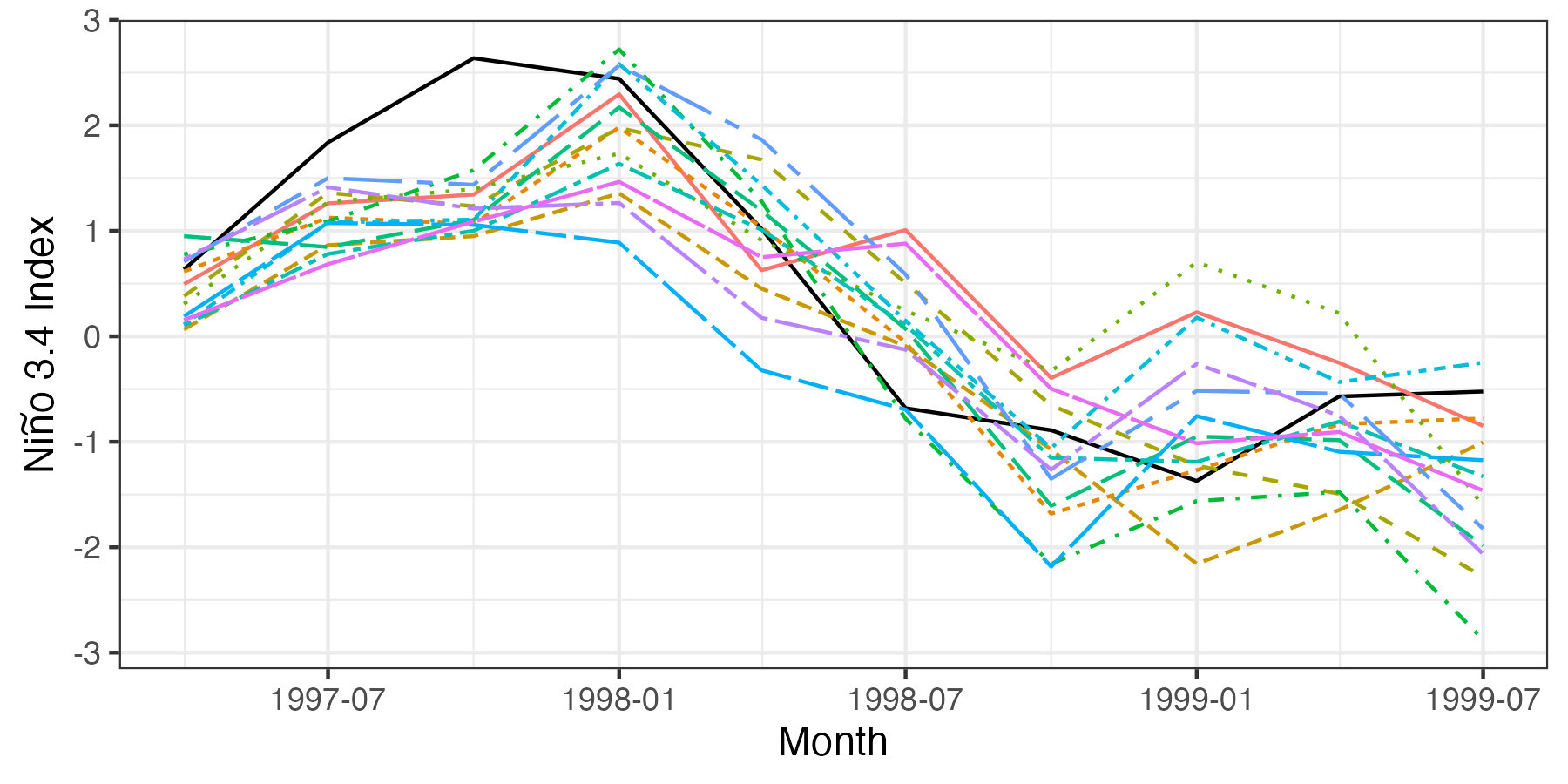 length.out = 10, by = "3 months")Plotting Results for Forecasts in the Niño 3.4 Region